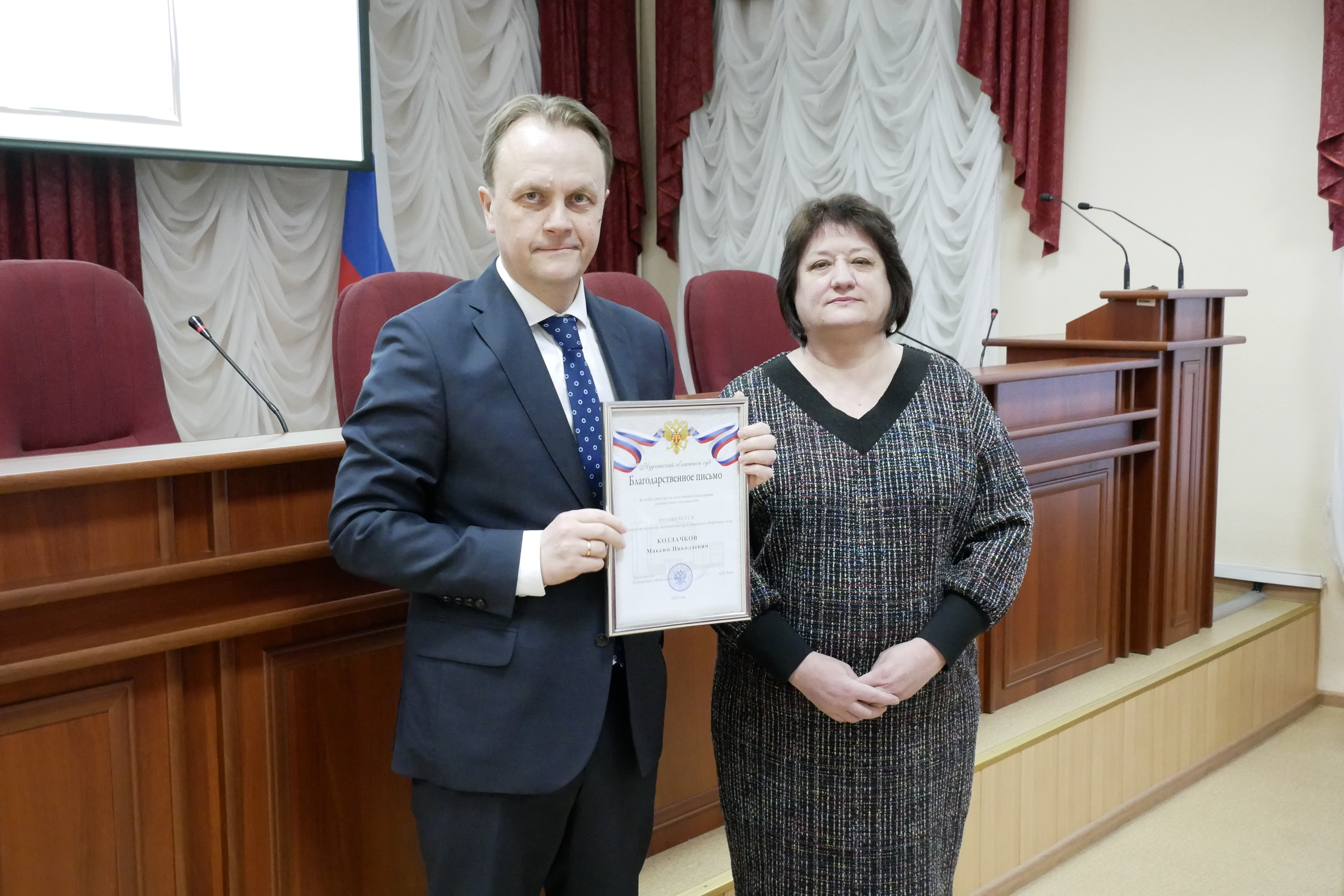 20 февраля в Курганском областном суде состоялось торжественное собрание, посвященное Дню защитника Отечества. Заместитель председателя суда Литвинова Ирина Витальевна поздравила мужскую часть коллектива с предстоящим праздником. Она пожелала всем крепкого здоровья, благополучия, доблести и мужества. За большой вклад в реализацию судебной реформы, совершенствование правосудия в Курганской области, защиту интересов судейского сообщества Благодарность совета судей Курганской области объявлена судье Курганского областного суда Белоусову Д.В. Судьи Курганского областного суда в отставке Абдулин Р.С. и Сапунов В.А. награждены знаками отличия Судебного департамента при Верховном Суде Российской Федерации «За усердие» I и II степени соответственно. Благодарственным письмом Курганского областного суда поощрен руководитель аппарата-администратор Курганского областного суда Козлачков М.Н., Почетной грамотой Курганского областного суда награжден помощник председателя Курганского областного суда Тихонов О.Н. |