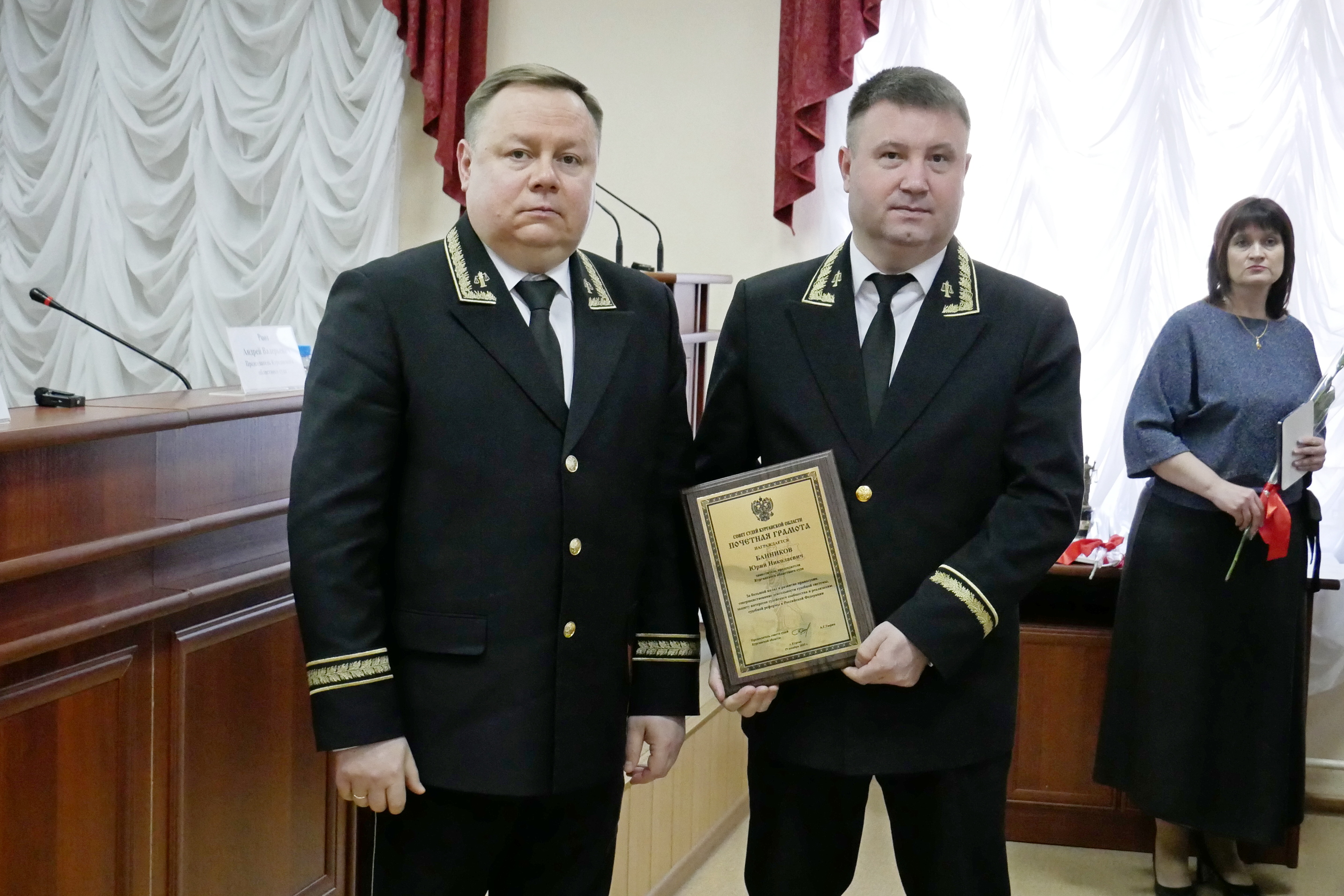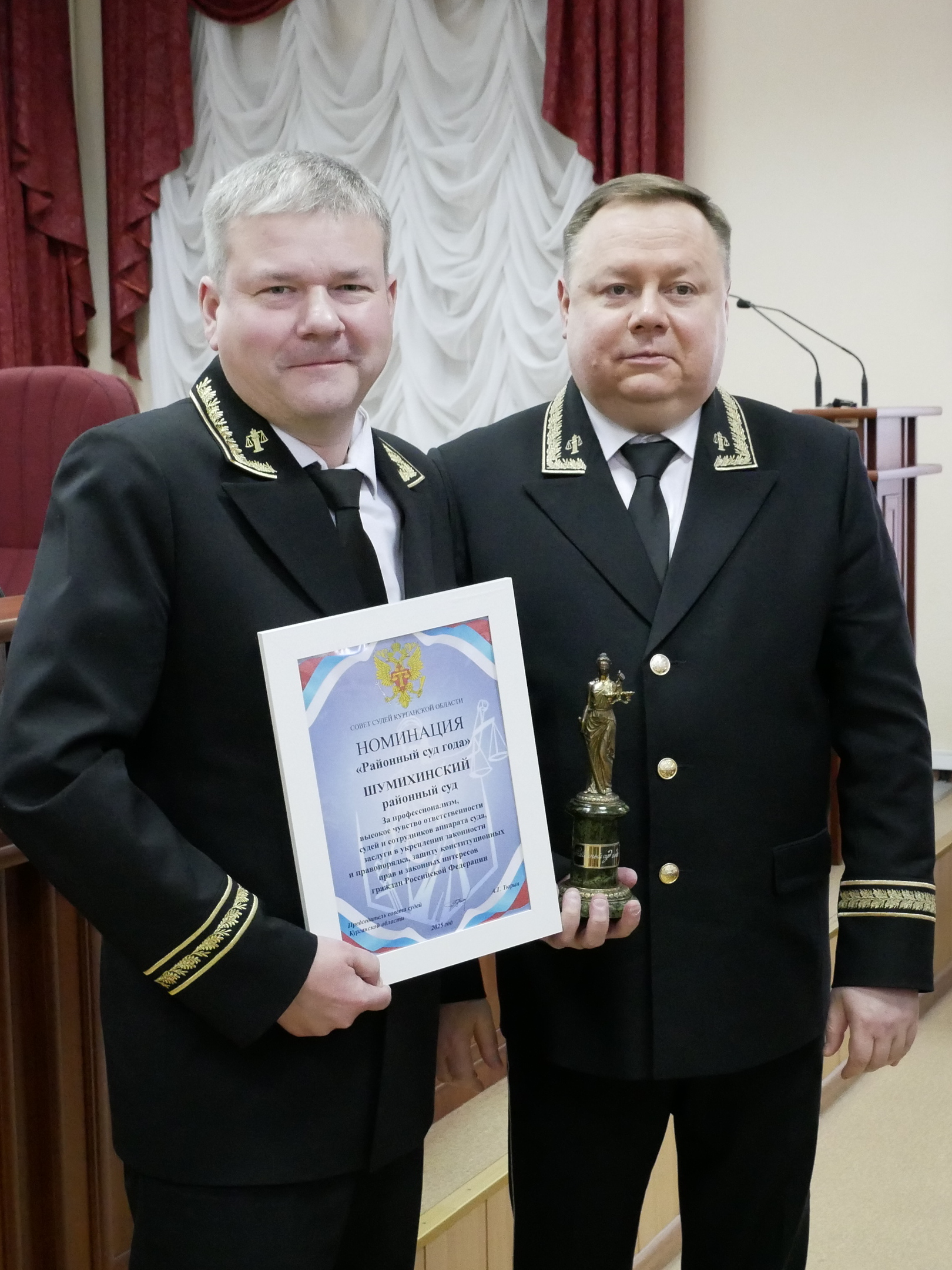 Торжественная церемония награждения судей состоялась в рамках совещания по подведению итогов работы судов общей юрисдикции Зауралья в 2025 году. «Судьей года» признан заместитель председателя Шадринского районного суда Сычёв Владимир Сергеевич, «Мировым судьей года» – мировой судья судебного участка № 52 судебного района города Кургана Ломонов Павел Владимирович. «Районным судом года» стал Шумихинский районный суд. Заслуженные награды вручил председатель Курганского областного суда Роот Андрей Валерьевич. Почетной грамотой совета судей Курганской области награжден заместитель председателя Курганского областного суда Банников Юрий Николаевич. Знаками отличия Судебного департамента при Верховном Суде Российской Федерации «За усердие» II степени награждены заместитель начальника отдела Курганского областного суда Кирьянова Оксана Валентиновна и помощник судьи Курганского областного суда Смирнова Екатерина Викторовна. Благодарственными письмами Курганского областного суда поощрены заместитель начальника отдела суда Лазаева Татьяна Владимировна и секретарь судебного заседания Кычева Елена Олеговна. |