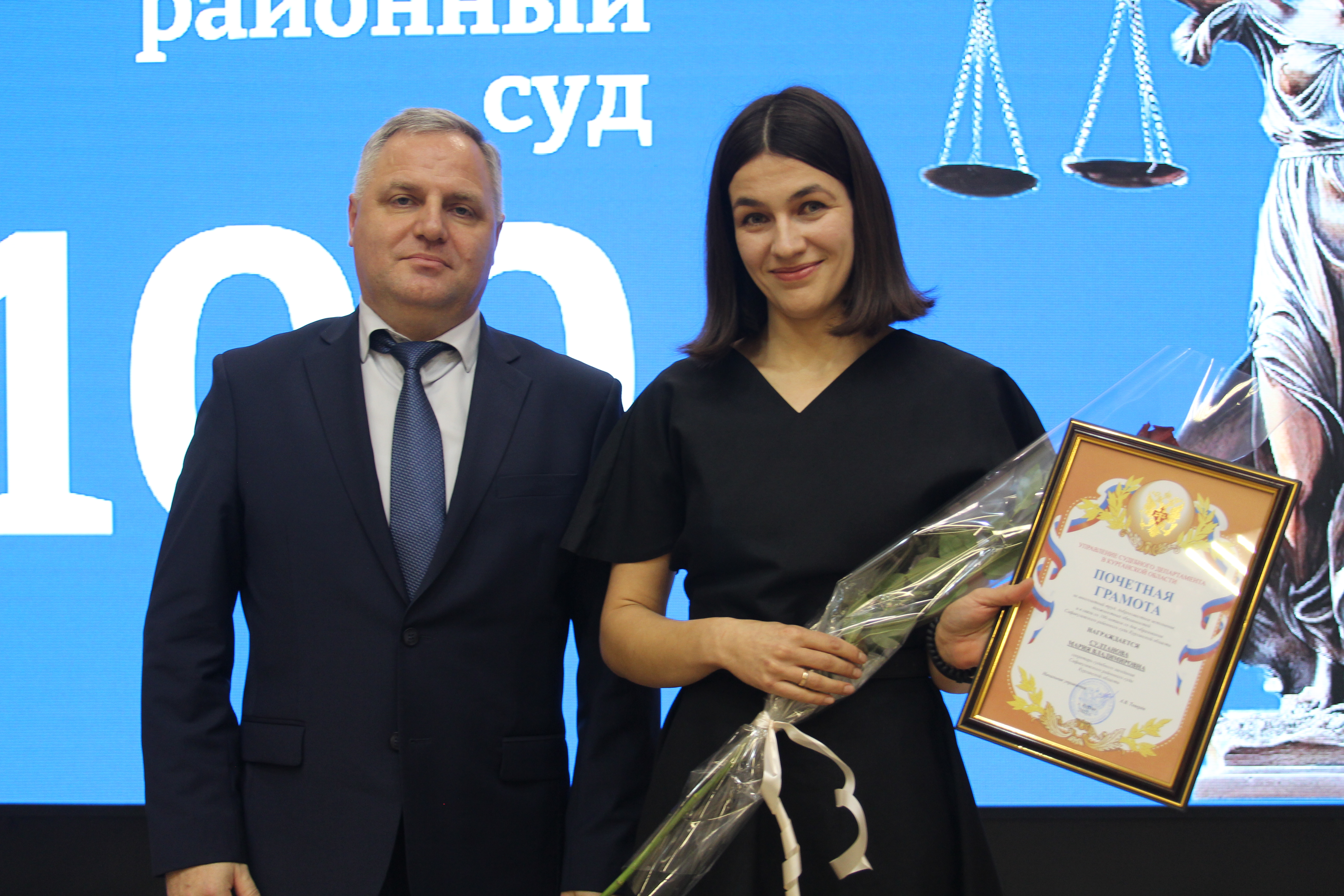 17 декабря в селе Сафакулево состоялось торжественное мероприятие, посвященное 100-летию со дня образования Сафакулевского районного суда. Со словами приветствия и поздравлениями выступили заместитель председателя Курганского областного суда Банников Ю.Н., начальник Управления Судебного департамента в Курганской области Теверёв А.В., директор филиала ФГБУ «Информационно-аналитический центр поддержки ГАС «Правосудие» Данилов М.В., председатель Сафакулевского районного суда Можарцев И.С., глава Сафакулевского муниципального округа Гильманов Р.Г., прокурор района Стежко С.В. Выступающие подчеркнули, что благодаря опыту и ответственной работе сплоченного коллектива суд успешно и на высоком профессиональном уровне выполняет возложенные на него задачи по защите прав граждан и организаций, по укреплению социальной стабильности в муниципальном округе. Во время мероприятия в торжественной обстановке наиболее отличившимся судьям и работникам аппарата суда были вручены ведомственные награды. |